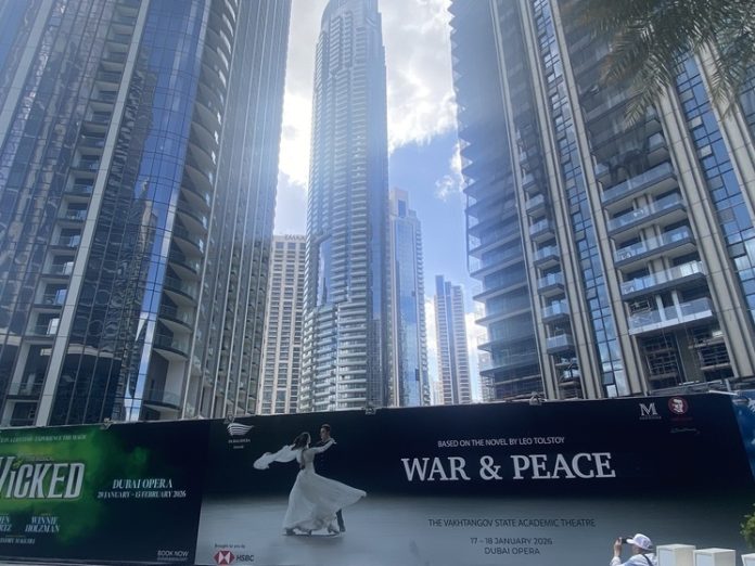В Дубае, городе солнечном, богатом, больше известном своими роскошными пляжами и небоскребами, чем культурной жизнью, в эти дни выступает Театр имени Вахтангова. Сюда он привез не какую-нибудь развлекательную комедию, а серьезную философскую постановку — «Войну и мир» по роману-эпопее Льва Толстого. Если учесть специфику и особенности страны, а также русскоговорящей диаспоры — предприятие это рискованное. О том, как принимали русских артистов в ОАЭ, что за публика в Дубае и как сверхматериальный достаток влияет на восприятие драмы России XIX века — в репортаже обозревателя «МК».